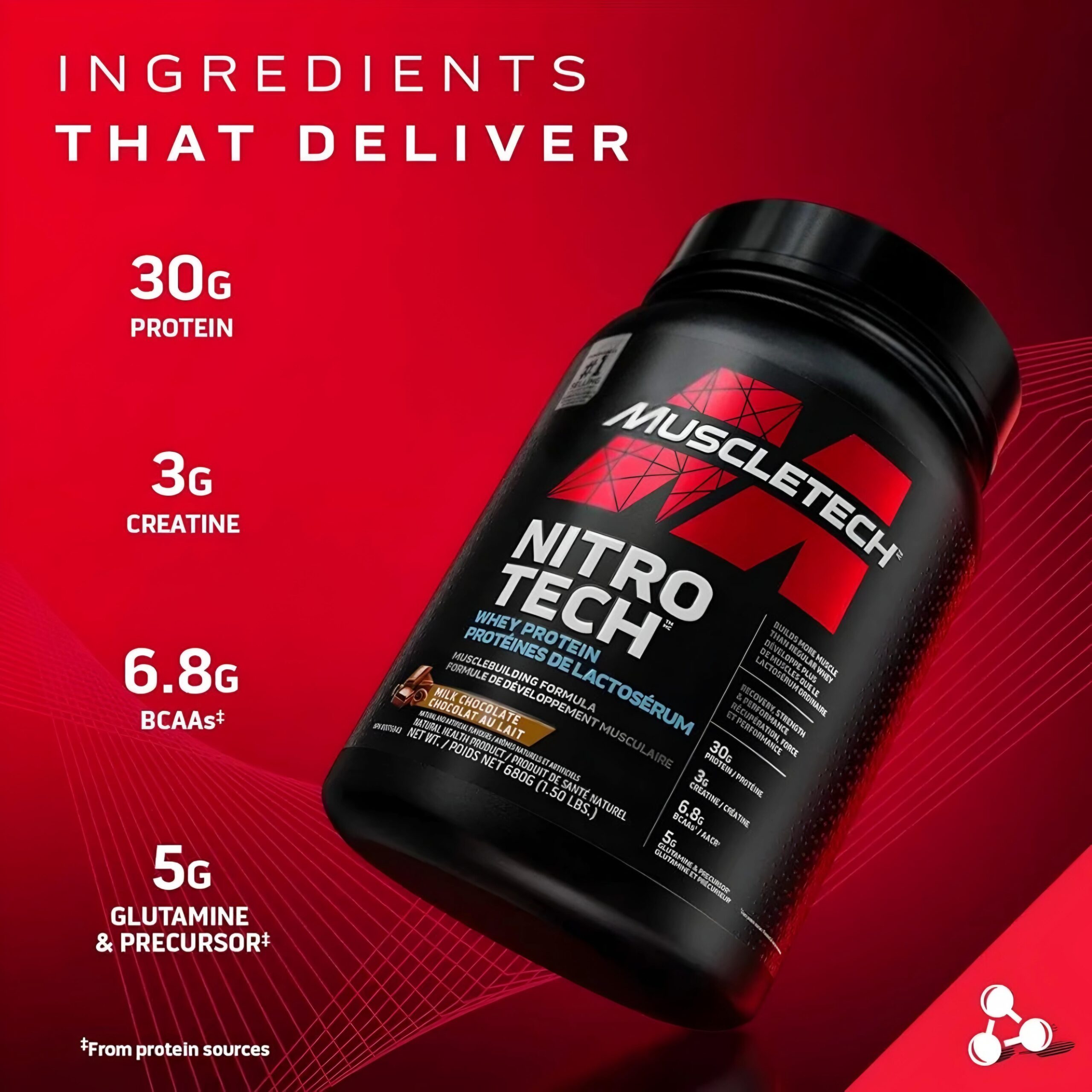 Whey Protein Powder, MuscleTech Nitro-Tech Whey Protein, Whey Isolate & Peptides Protein Powder, Muscle Builder for Men & Women, Lean Protein Powder for Muscle Gain, , 5 lbs (50 Servings)