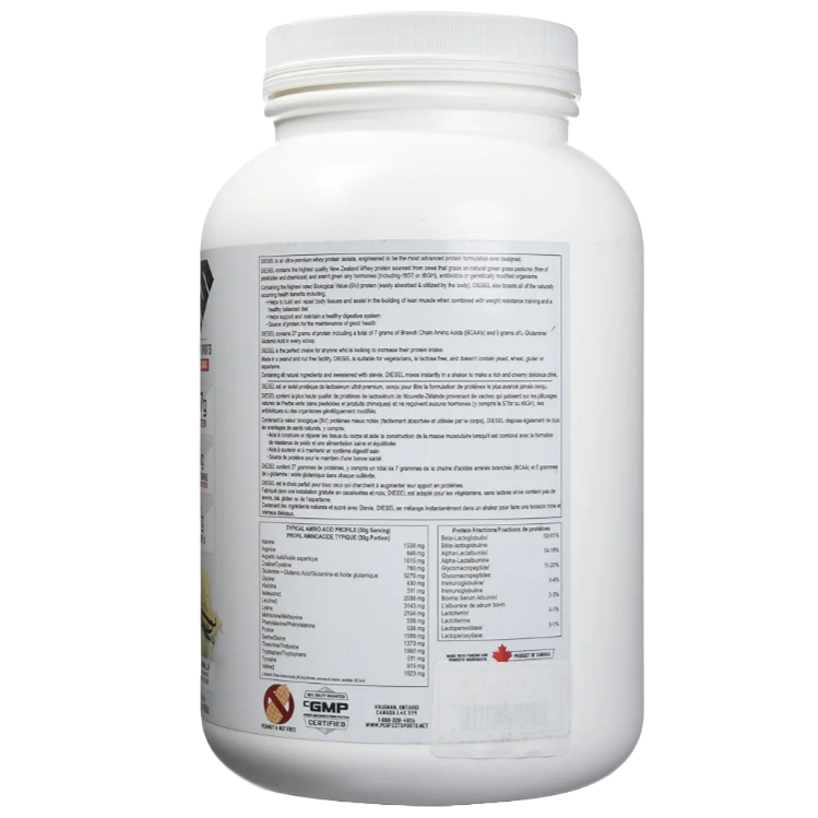 DIESEL Whey Protein Isolate is the superior protein powder. Unrivaled in quality, DIESEL exclusively contains New Zealand Whey Protein Isolate. It is an all-natural formula with 12 mouth-watering flavors and so much more! This highly sought-after ultra-premium whey protein isolate is the Number #1 Selling New Zealand Whey Protein Isolate on the market.DIESEL formulas contain no artificial flavors; no artificial sweeteners (e.g. Sucralose, Aspartame, or acesulfame potassium), and no artificial colors/dyes. Moreover, due to the advanced purification process employed by Perfect Sports, the lactose is removed from our DIESEL New Zealand Whey Protein Isolate. Thus, making our DIESEL formula lactose-free! If that weren’t enough, our DIESEL protein powder contains no gluten and is peanut & nut-free.