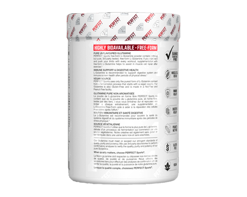 GLUTAMINE by PERFECT Sports is your workout recovery accelerant in its purest form. This vegan-friendly, pharmaceutical-grade L-Glutamine is a micronized formula, meaning it’s designed for rapid absorption to Aid muscle repair and immune function. The non-GMO source ensures you’re getting the highest quality supplement, which aids in preventing muscle breakdown and Aids gut health. Whether you’re looking to boost your recovery post-training or enhance your overall wellness regime, GLUTAMINE provides the essential Aid your body needs to perform and recover optimally.