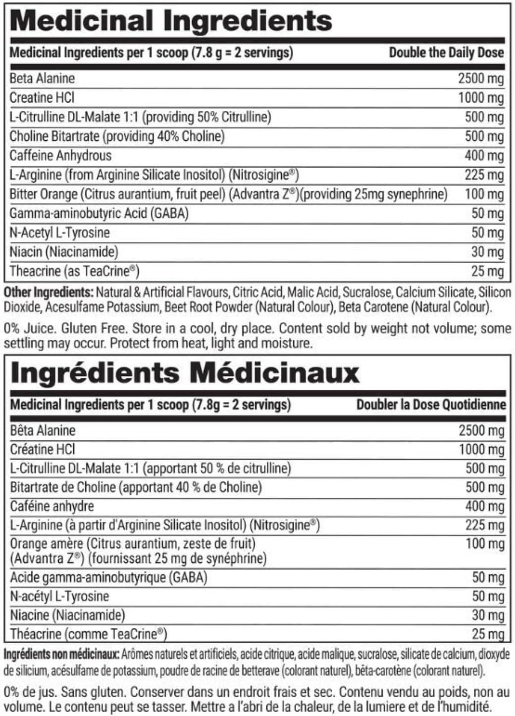 - Suggested Use: Mix one scoop of pre-workout with 8 oz of water. Consume 15-30 minutes prior to exercise. For first time users, take half a scoop to assess tolerance. Do not exceed one scoop (one serving) in a 24-hour period.