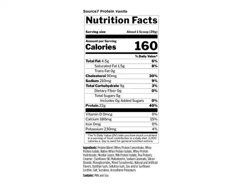 Source7 Protein brings together seven premium proteins, decadent flavor, and velvety smooth texture in an easy-to-mix shake. Its exceptionally great taste – inspired by creamy gelato – is complemented by 22g of protein from a blend of faster, moderate, and slower digesting sources.